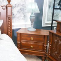 دو عدد پاتختی با طراحی متقارن و کشوهای طلایی‌رنگ، علاوه‌بر زیبایی، فضای ذخیره‌سازی کاملی برای وسایل شخصی شما فراهم می‌کنند. ارتفاع مناسب، سطحی کاربردی برای چراغ خواب یا دکور تزئینی فراهم کرده است.