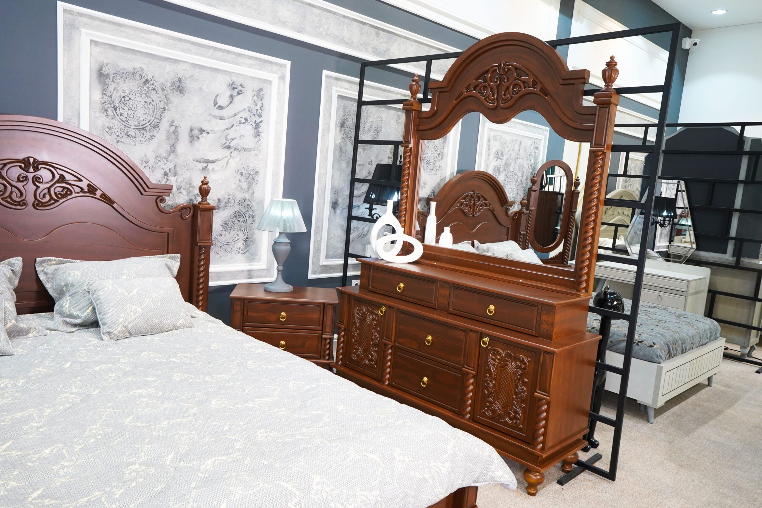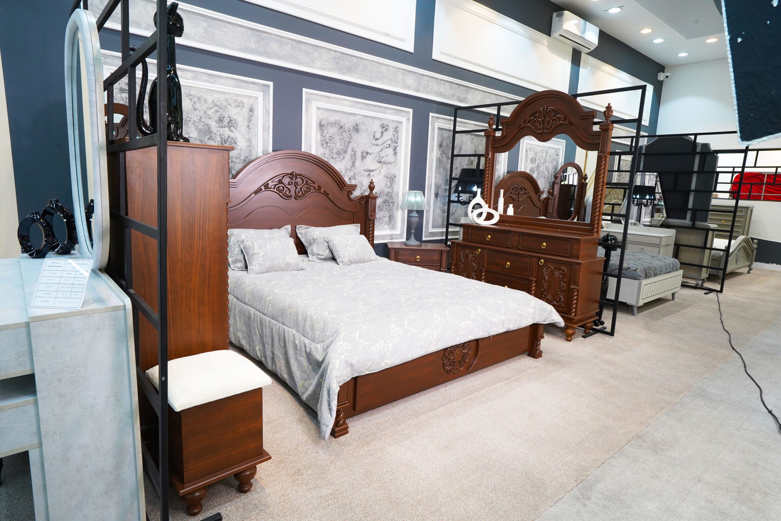 ✔️ هماهنگی کامل بین اجزای مختلف: تخت، پاتختی، میز آرایش