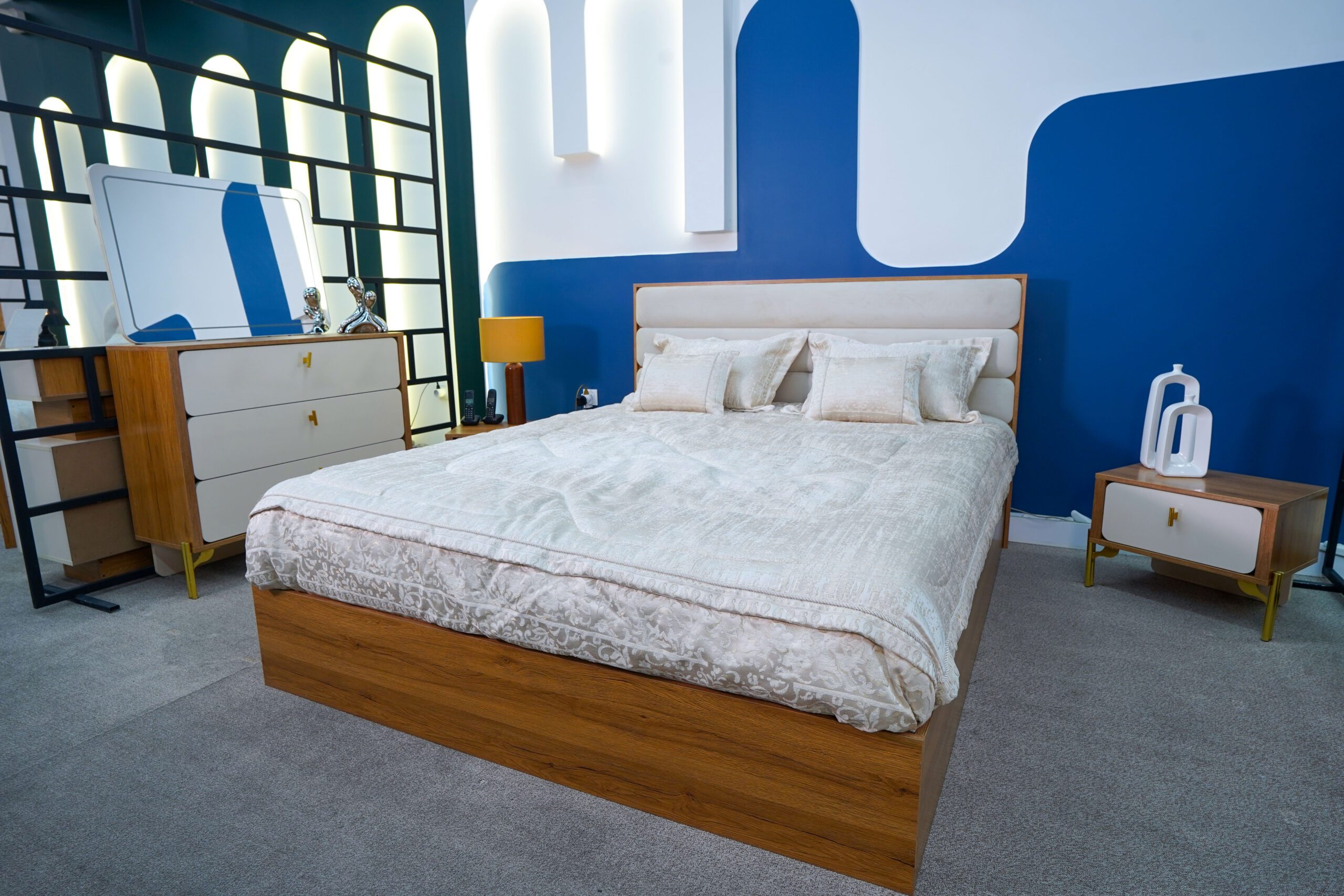 برای زیباتر شدن دکوراسیون اتاق خواب با سرویس خواب مدرن مونالیزا، پیشنهاد میشود از رنگهای خنثی و گرم مانند کرم، بژ یا قهوهای روشن در انتخاب پردهها، فرش و روتختی استفاده کنید. از آنجا که این سرویس خواب چوبی دارای بدنهای با رنگ چوب طبیعی و تاج پارچهای کرم رنگ است، ترکیب آن با عناصر ساده و مینیمال، فضایی آرام و دلنشین میسازد. برای تکمیل دکوراسیون تخت خواب دو نفره مونالیزا، میتوانید یک آباژور با پایه چوبی و شِید پارچهای روشن روی پاتختیها قرار دهید تا نور نرم و دلپذیری ایجاد کند. نصب یک تابلو یا قاب هنری بالای تاج تخت خواب، به اتاق جلوهای هنری و خاص میبخشد. همچنین استفاده از آینه کنسول قدی در گوشهای از اتاق میتواند فضا را بزرگتر و روشنتر نشان دهد. با توجه به قیمت سرویس خواب دو نفره مونالیزا که در مقایسه با سایر مدلها مناسب است، میتوانید با خرید سرویس خواب ارزان از تولیدی و انتخاب عناصر ساده و هماهنگ، زیبایی این مدل را دوچندان کنید.